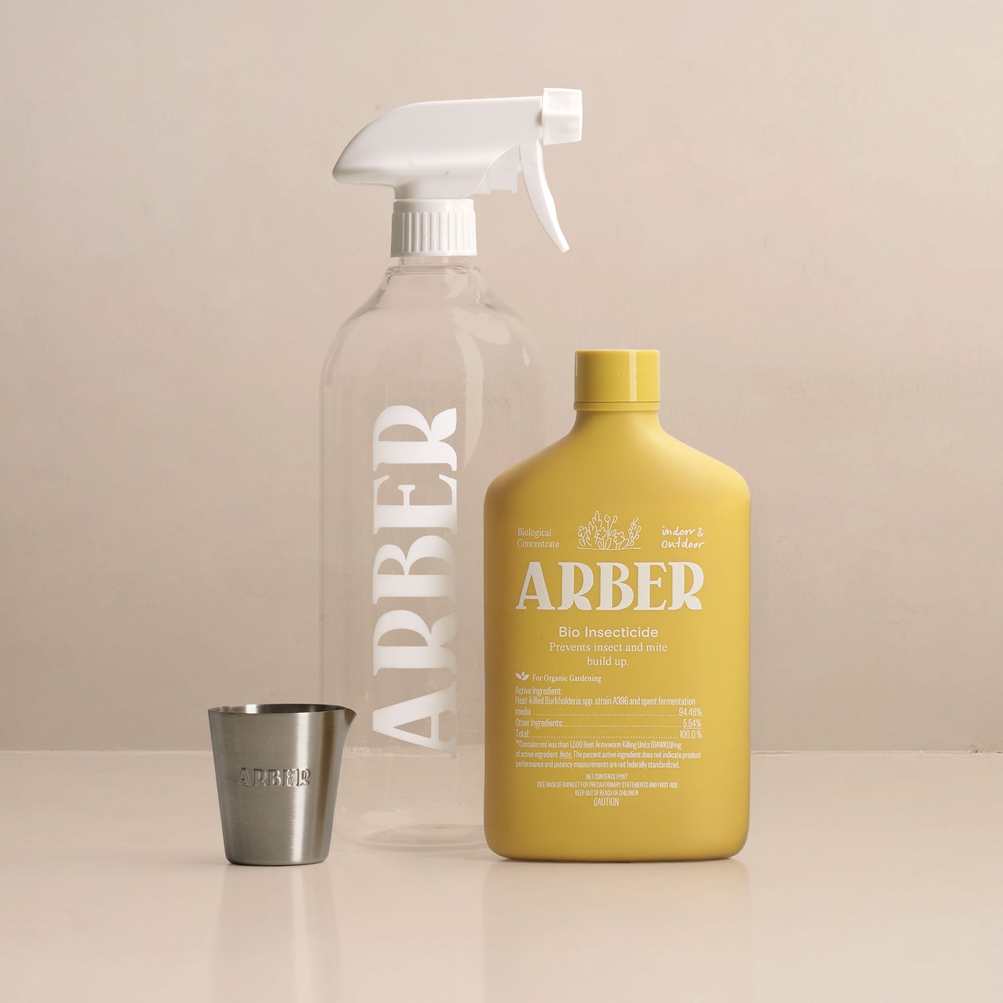 Using the Measuring Cup measure 0.25oz of Organic Bio Insecticide and mix in the 32oz Spray Bottle of water.